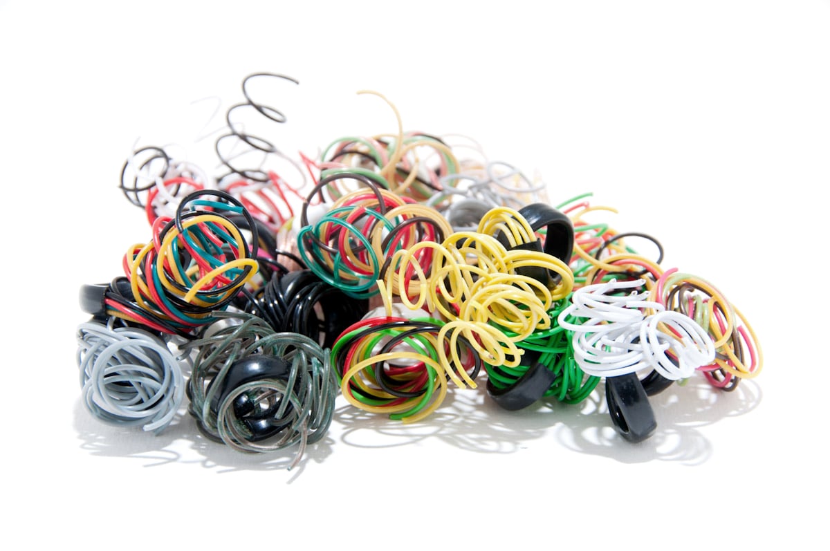 Ringggs are really pretty and super fun to play with. It's like a virtually indestructible stress relief toy disguised as a stylish fashion accessory! And they're made out of used telephone cord and are 100% recycled. Remember telephones? LOL. Me neither!