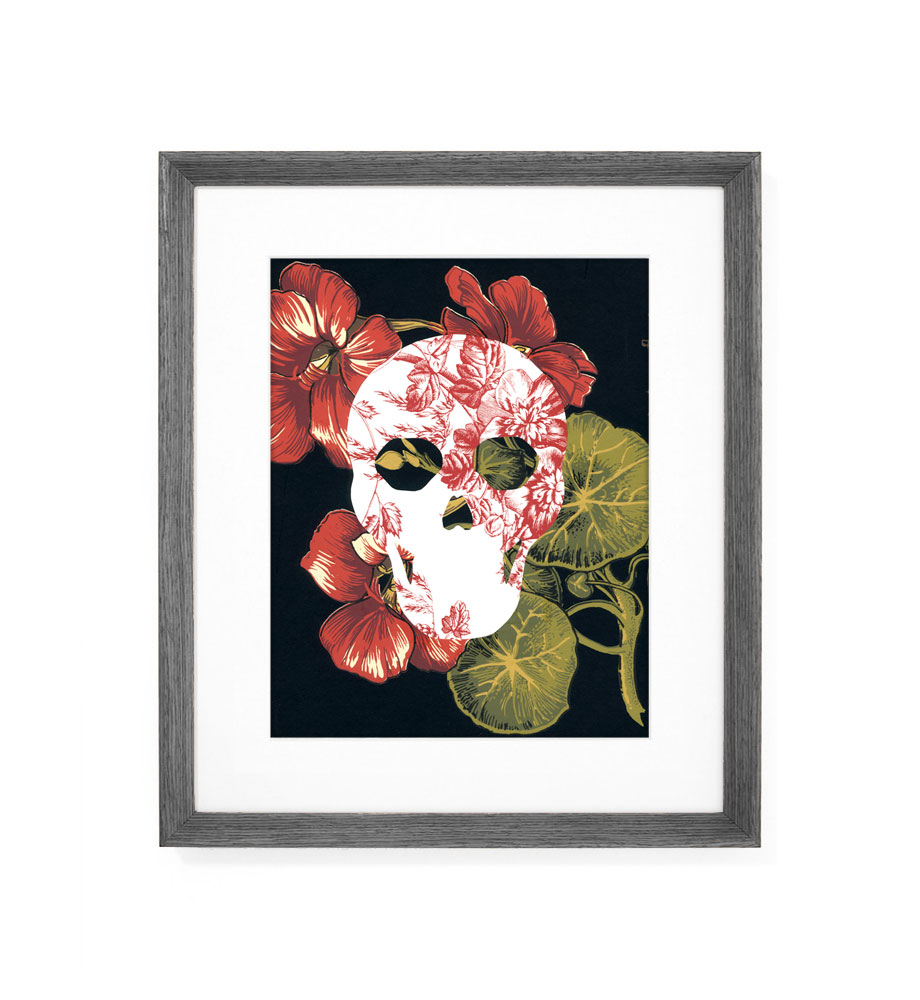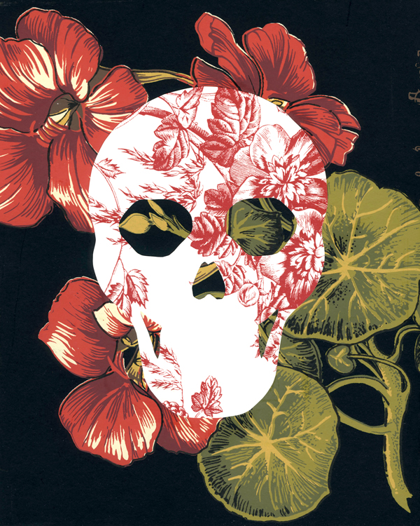 This Dia de los Muertos inspired skull is a print of one of my original hand-cut wallpaper pieces.