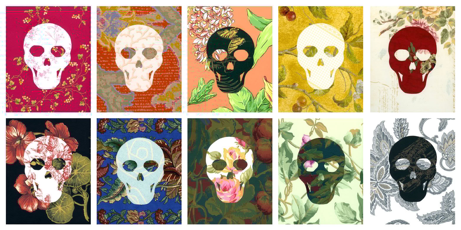 To see the other wallpaper skull pieces: http://shop.ninethousandthings.com/collections/1149087-skulls